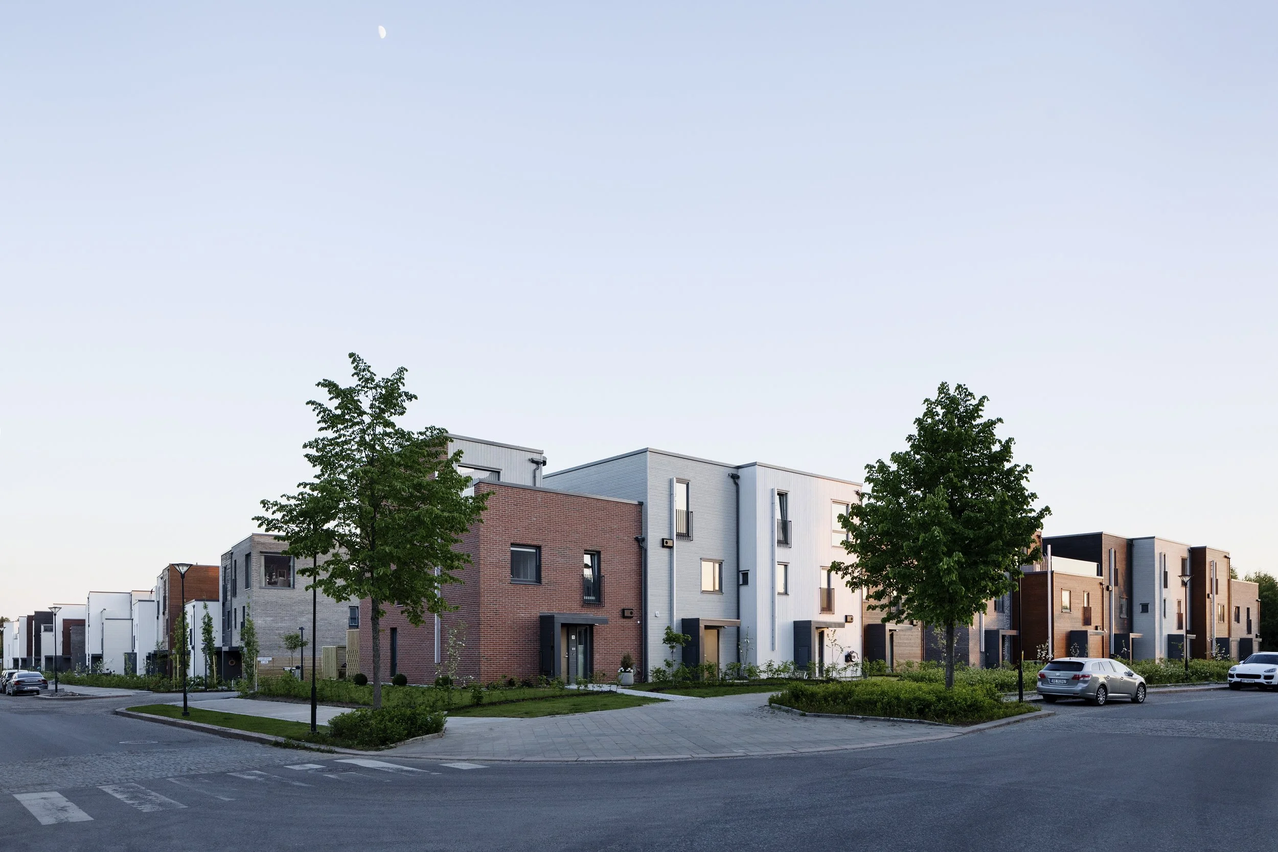 Seventy-seven row-houses are distributed over a 16 800 square meter property in Jessheim, and offers a total of 11 000 square meters of living area. The original zoning plan for this area involved medium-rises with apartments and street parking.