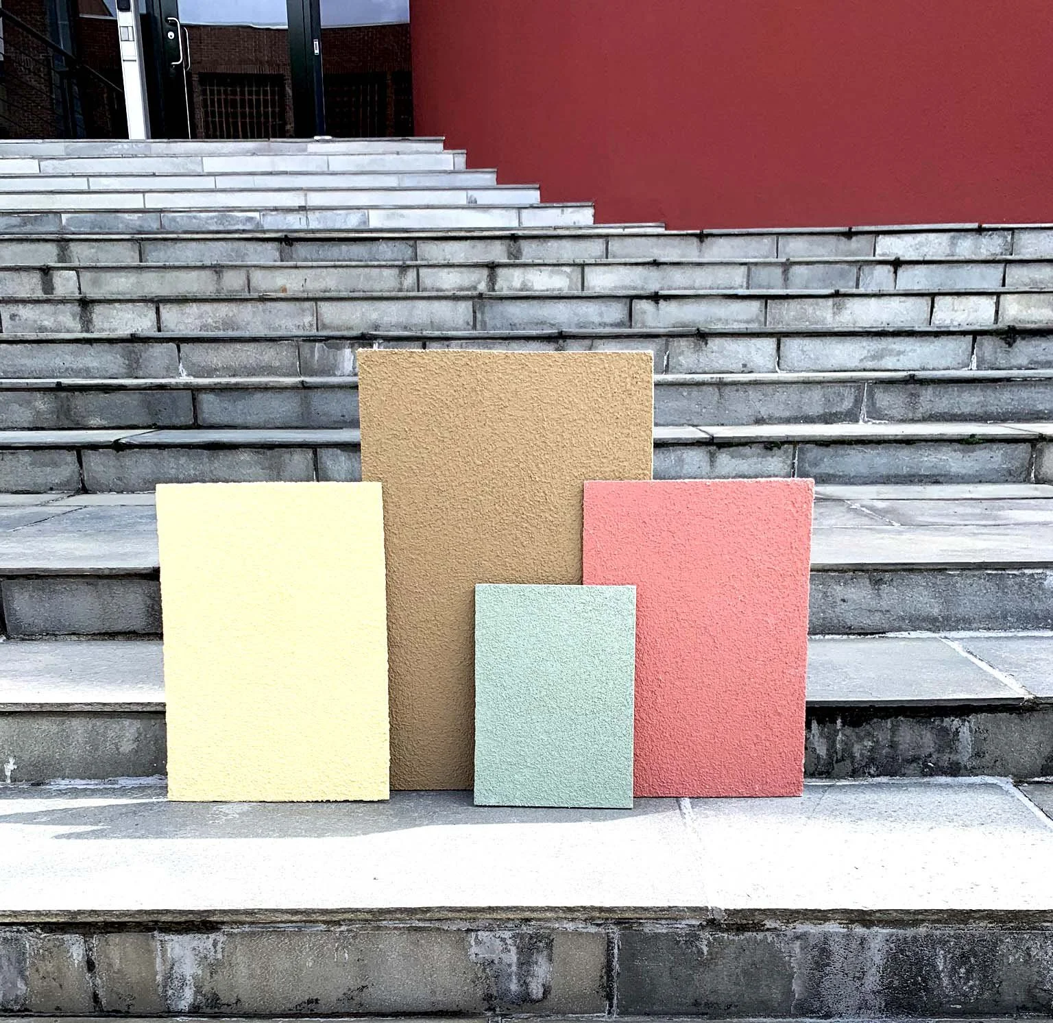 The process around the color palette started with scanning and registering the existing colors in the area. This became the basis for developing a locally rooted color scheme for the project. Swatches of colors were put next to each other and tested with existing color codes in the area. To get the right palette for the project, alternative colors were brought in as testers on plastered façade elements These were tested against each other in different lighting, and on location.